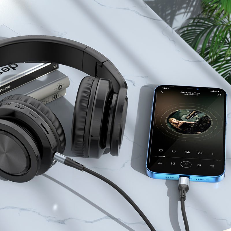1. Length: 1m. Weight: 24g. 2. Material: environmentally friendly silicone + aluminum alloy. 3. Core: three-core oxygen-free copper core, gauge 0D3.8, 10/0.1*3C. 4. Connector: for Lightning male to 3.5mm male.