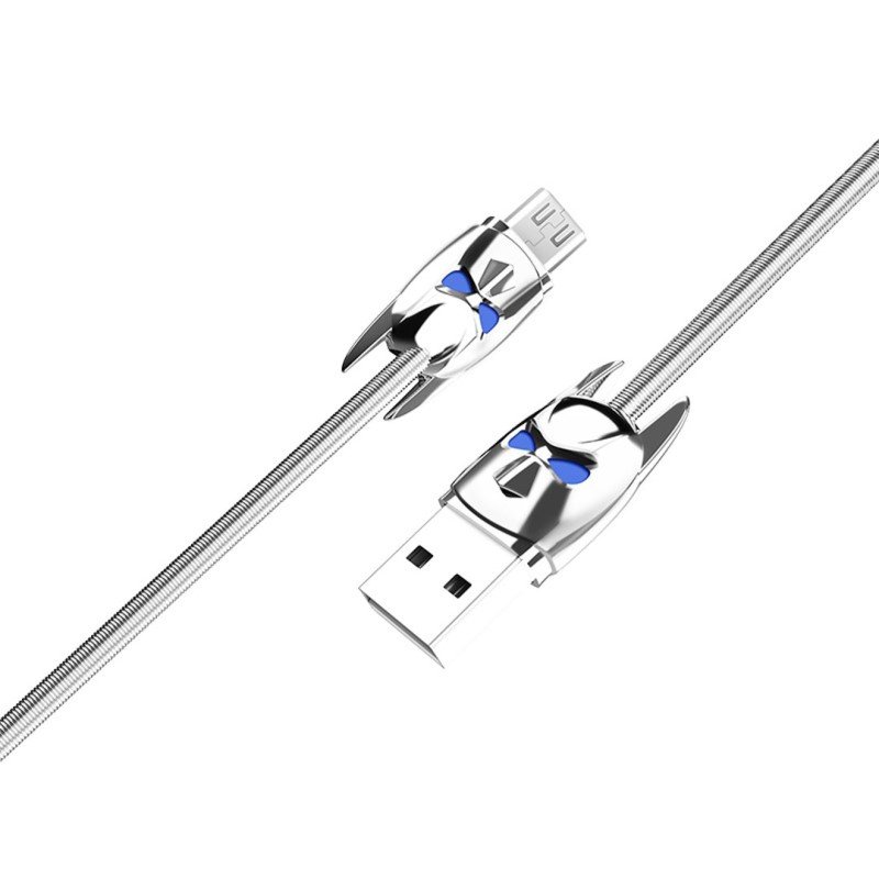 1. Length:1.2m, net weight: 42g. 2. Rated current: 2.4A Max. 3. Outer cladding: stainless steel spring metal material, inner TPE round wire. 4. Connector: ABS plating. 5. 118 tinned oxygen-free copper wire.