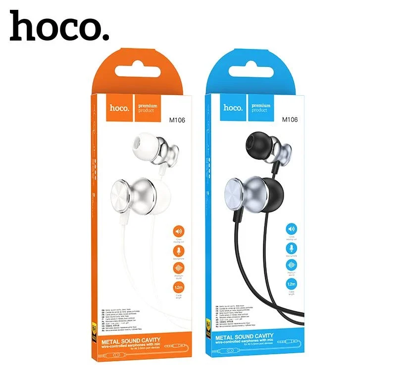 Specification: Hoco M106 Fountain metal universal earphones with microphone