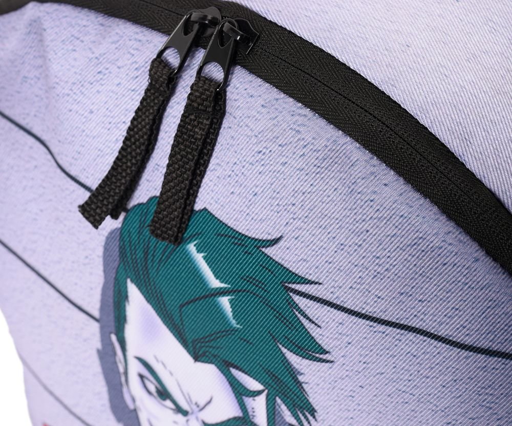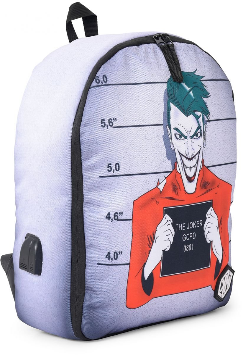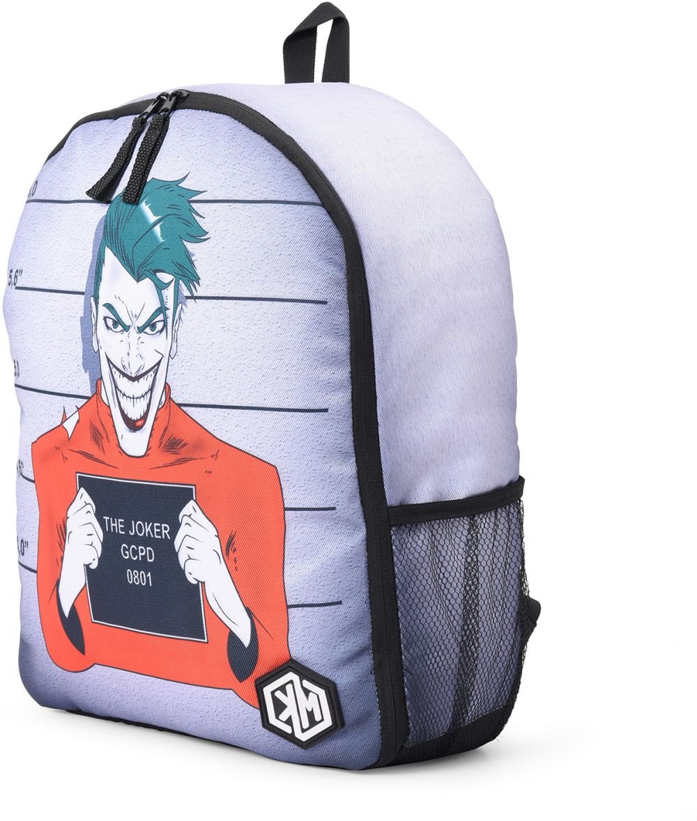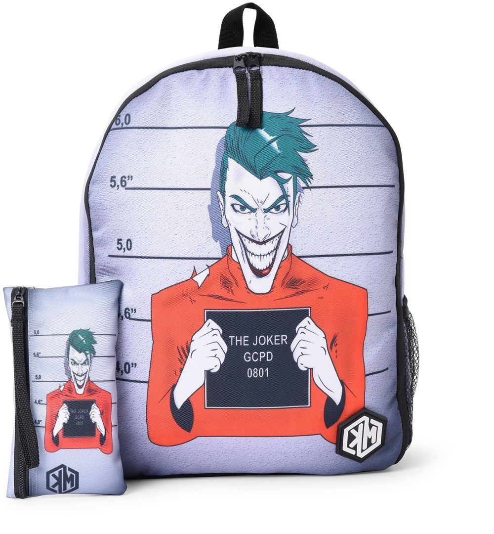 KM Polyester Joker Print Zip-Up Top Handle Unisex Backpack – Grey and Red