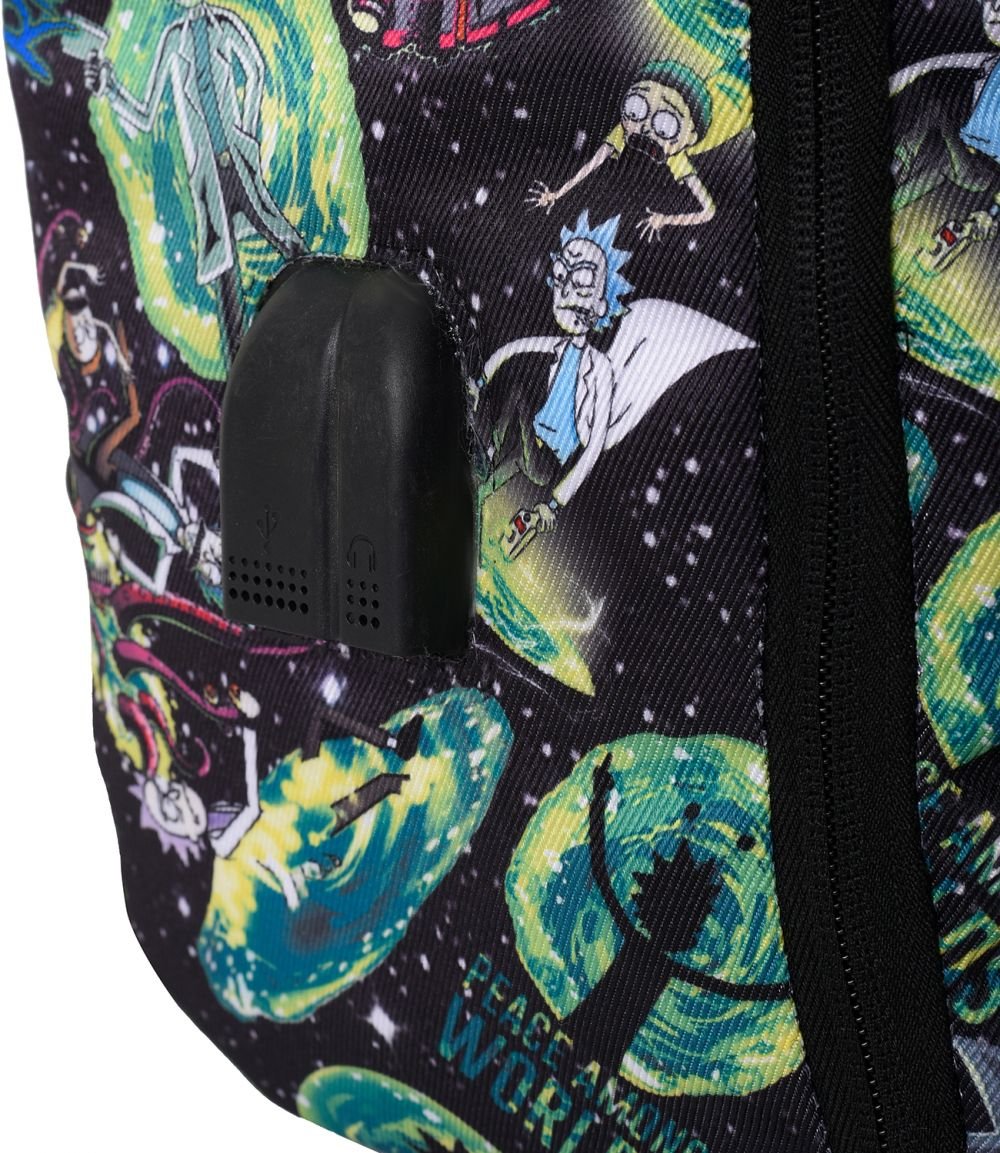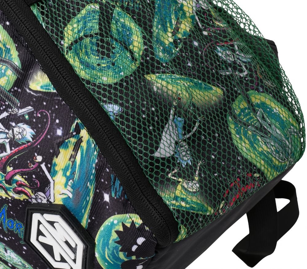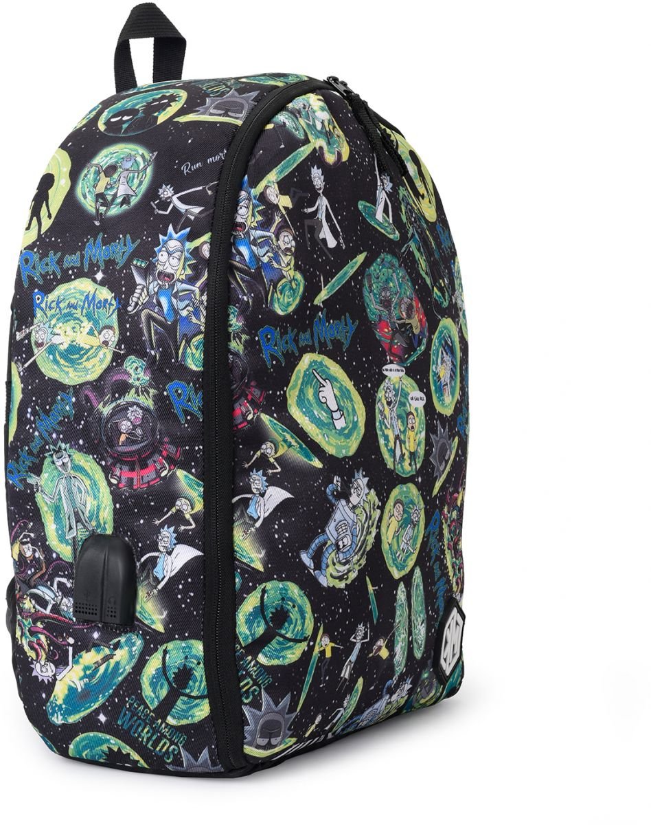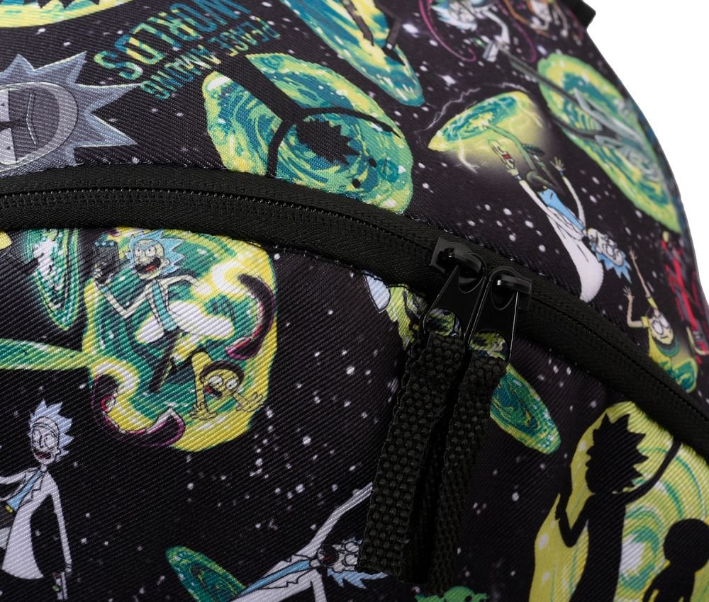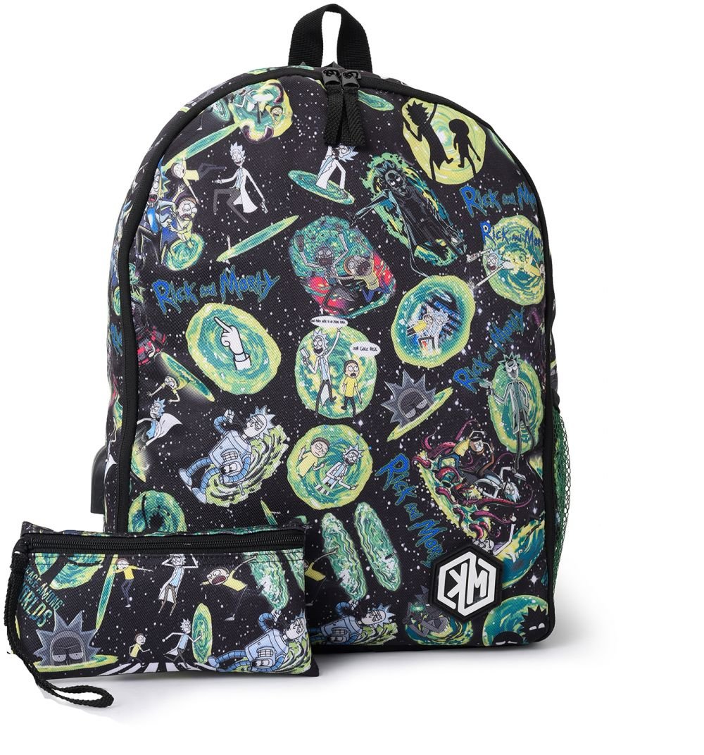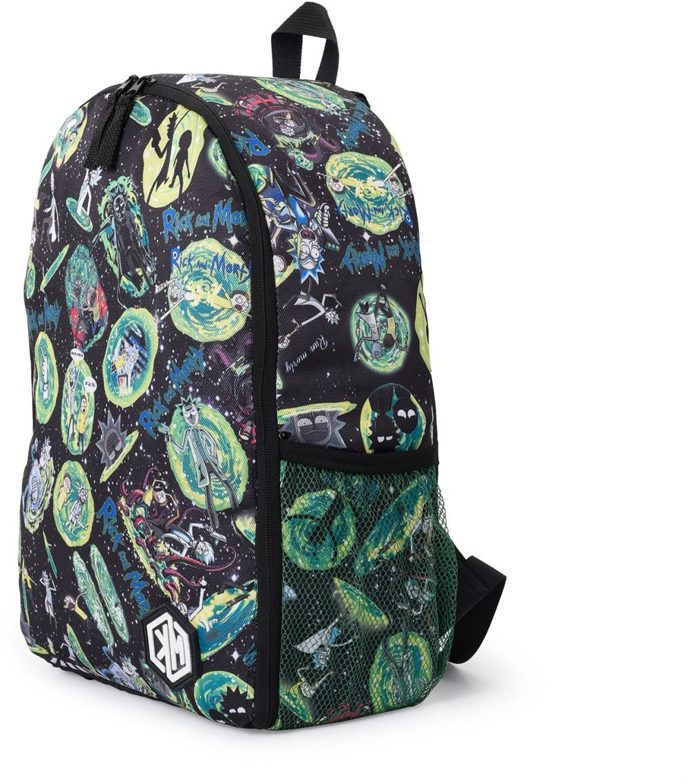 KM Polyester Rick and Morty Zip-Up Top Handle Unisex Backpack – Black and Green